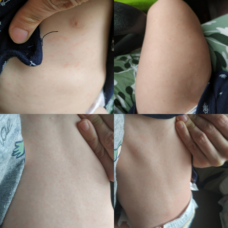 ДД, может у кого сохранились ? У моего после 3 дней лихорадки на пятый что-то мелкое красное за ушами