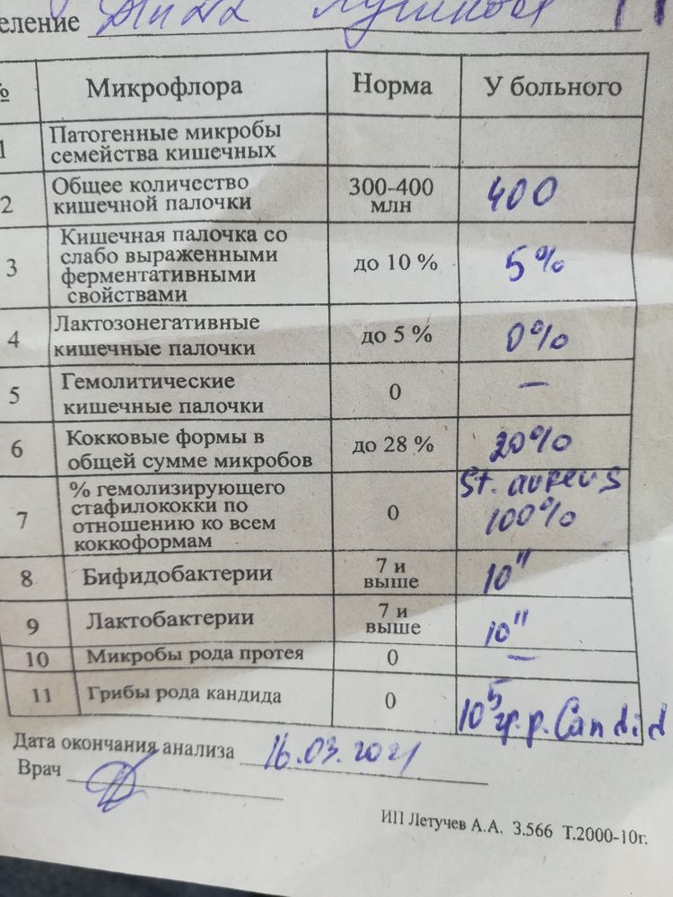 Рез-ты анализа на дизбактериоз