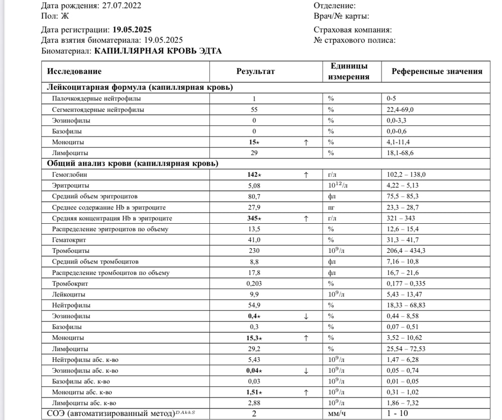 Виктория Ткаченко, повышенные моноциты указывают на инфекцию. Гемоглобин повышенный может означать все что хочешь , у детей чаще всего указывает на обезвоживание