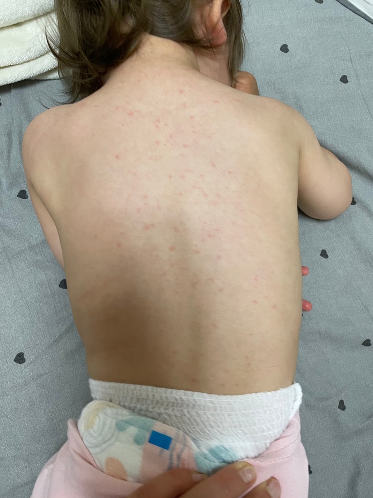 Не могу понять что за сыпь, потница или энтеровирус ? С субботы по понедельник была температура, максимум 39. Сегодня уже не было, а к вечеру заметили сыпь. Были у врача с температурой, сказала что горло красное и есть язвы, сказала наблюдать чтобы не появилась сыпь на пятках на лодошках на попе и возле рта, но ничего из этого перечисленного нет у нас, врач думает что возможно энтеровирус. Повторно к врачу еще не ходили на счет сыпи. Сама предполагаю что потница так как вчера вечером после нурофена она вся вспотела, был холодный липкий пот.