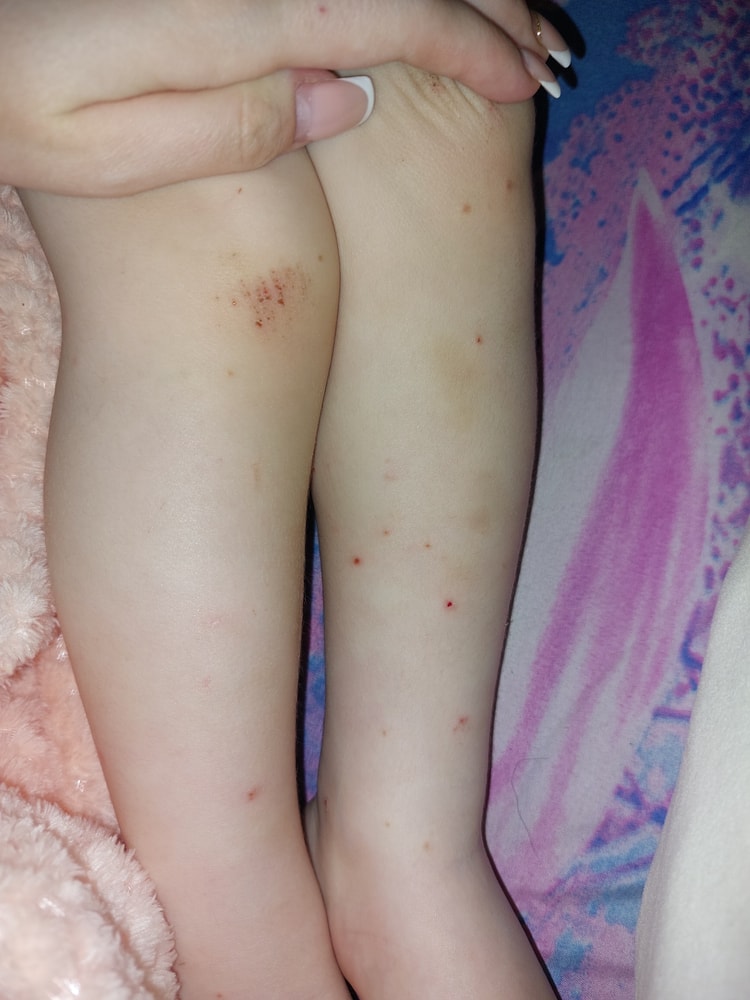 Мы недавно отболели аденовирусом. Температура дичайшая много дней. Лежали в больнице. И там на ногах появилось вот тоже как у вас. Ребенок расчесывал все до крови. Я сначала подумала, что его покусали ночью комары... Но опять же почему меня не покусали? Позвала врача, она сказала типа укусы... Они очень долго проходили, ребенок все чесал.