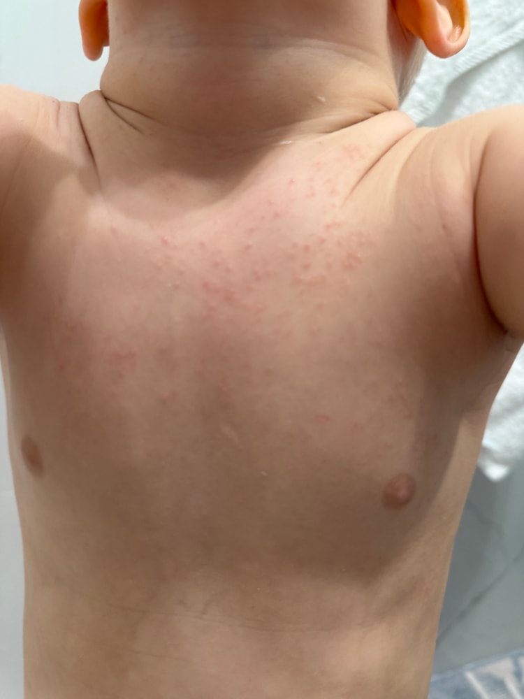 Здравствуйте! может, кто-то сталкивался с такой сыпью у ребенка? 2.5 года. Месяца два назад появилась такая сыпь. Помаду элакомом — пройдет на неделю, потом опять появляется. Уже были у нескольких дерматологов. Говорят полную фигню, которая не может быть правдой. Очень надеюсь на помощь. Сыпь на груди,