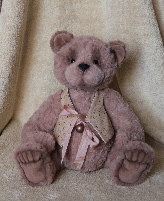 Мягкие игрушки-зверушкиСегодня сшился мишка из итальянской вискозы. На xлопковой жилетке шелковая ленточка с бубенчиком. Мишка ростиком 27 см.