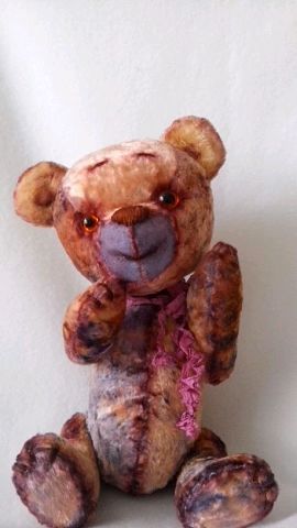 Мягкие игрушки-зверушкиБлагодаря прекрасному МК от Ксении родился вот такой мишутка.Сшит из советского плюша(изрядно попорченного мною),набит опилками,тонирован маслом.Крепление шплинты.