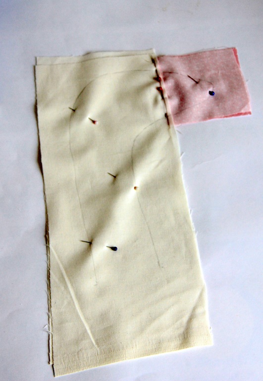 Видите, я вколола булавки прямо в швы, чтобы убедиться, что они совпадают и не сместятся. После этого фиксируем булавками полотно в нескольких местах, и можно строчить.