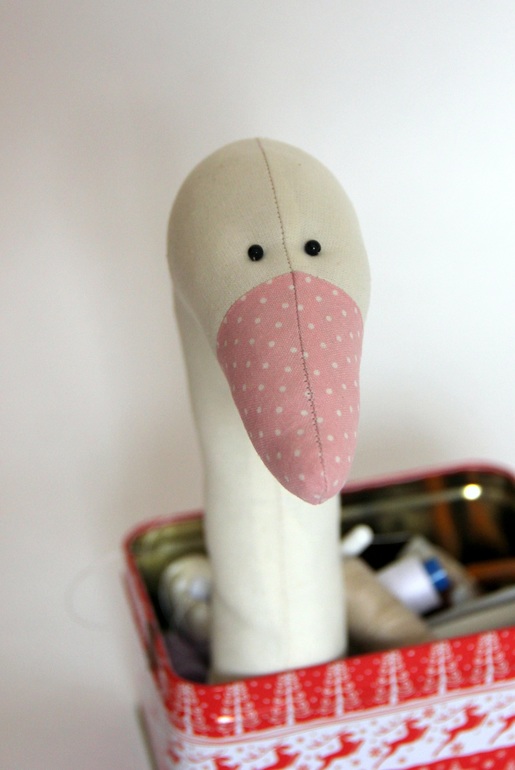 На этом этапе у нас есть гусь и мешок, следующим этапом будет сборка и декорирование пакетницы. Всем удачи и набивки без складочек))