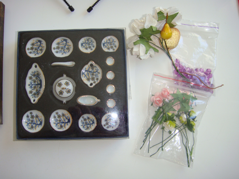 и подробнее.. для меня и моего хомяка набор минипосуды (мимими)), цветы и бусинки
