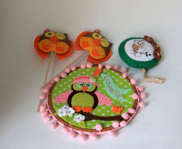 Это композиция в пяльцах-рамке для детской - милейшая совунья и пумпоны))) Столько деталек и так здорово сделано.... ммм...