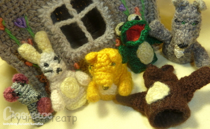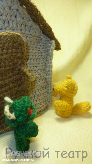 Маленький мой играет с ними, вверх подбрасывает, а если сказку играем, то слушает, отнимает игрушки и щебечет чего-то там на своем. Кстати, сами игрушки я храню в домике, сложу все внутрь и на пуговку дверь закрою))