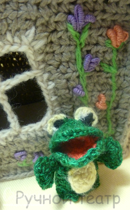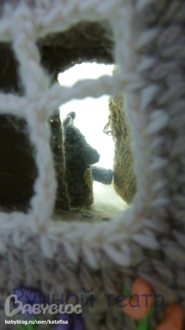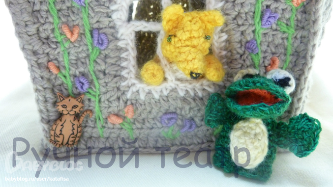 Спасибо Ирин!! Внутри дома картонный каркас, обшитый тканью, крыша дома треугольная, не обшитая, дверь также просто вязанная, имеет ручку.