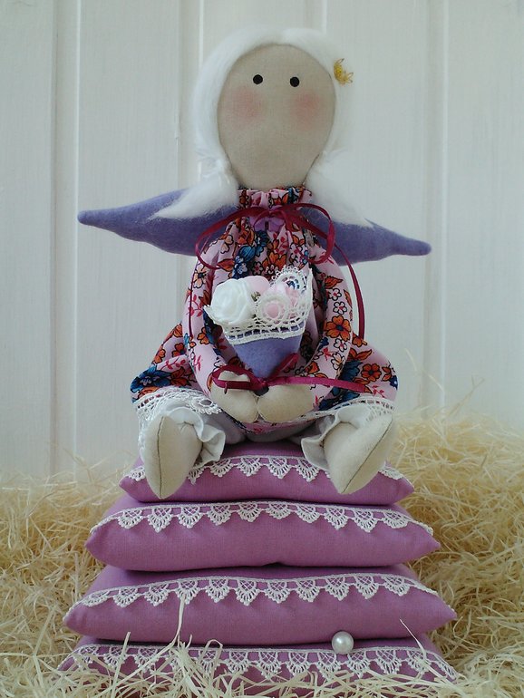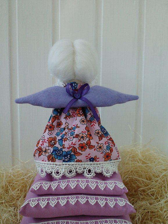 Интерьерная куколка ищет новый дом. Материалы: хлопок,кружево,фетр,фоамиран,бусина,атласная ленточка,шерстяная нить,пуговицы,шерсть для валяния,акриловая краска. Высота подушек 12см, высота куклы 21см. По вопросам приобретения пишите в сообщении. Дополнительные фото.