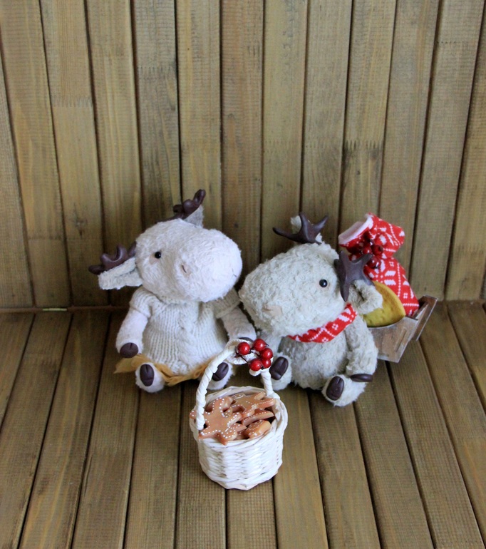 Тедди звери!Покажу мое начало подготовки к осенне-зимнему сезону. Это лосяши, мальчик и девочка. Сшиты из вискозы, набиты опилками, рога-копытца из Фимо.