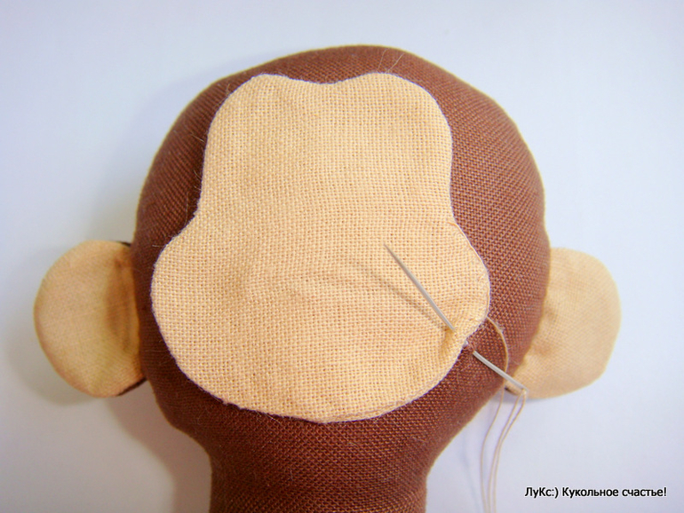 личико пришила обметочным швом по периметру телесными нитками: