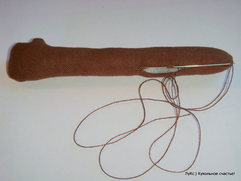 Когда осталось небольшое отверстие не зашитым, донабила мордочку очень плотно и зашила до конца.
