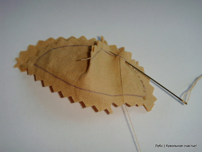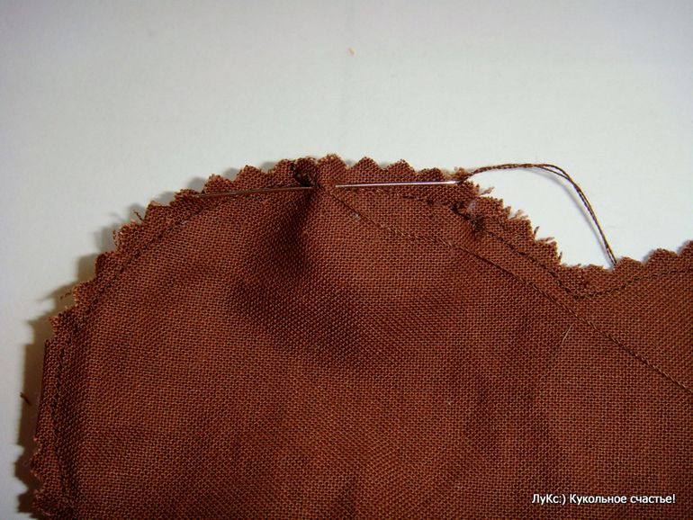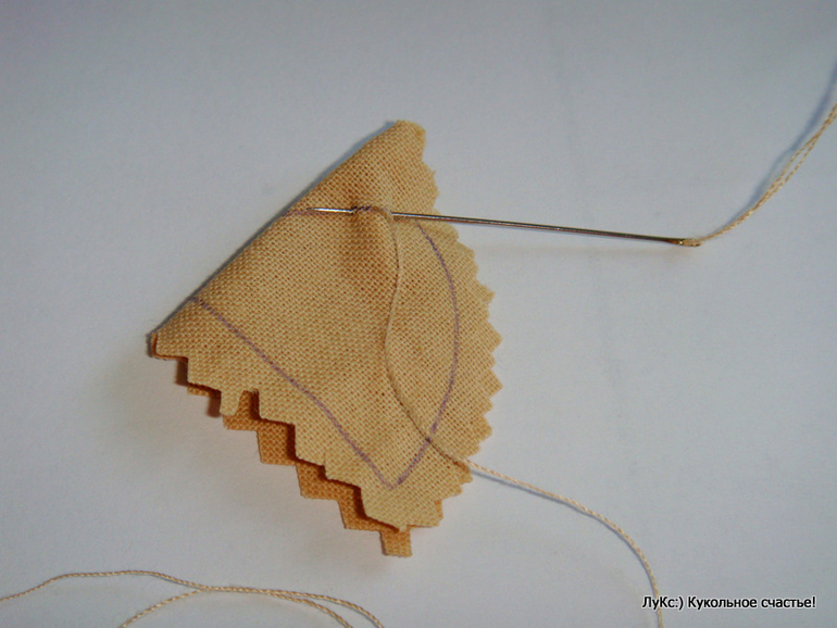 и потайным швом пришила по кругу к лицу, убирая булавки в процессе.