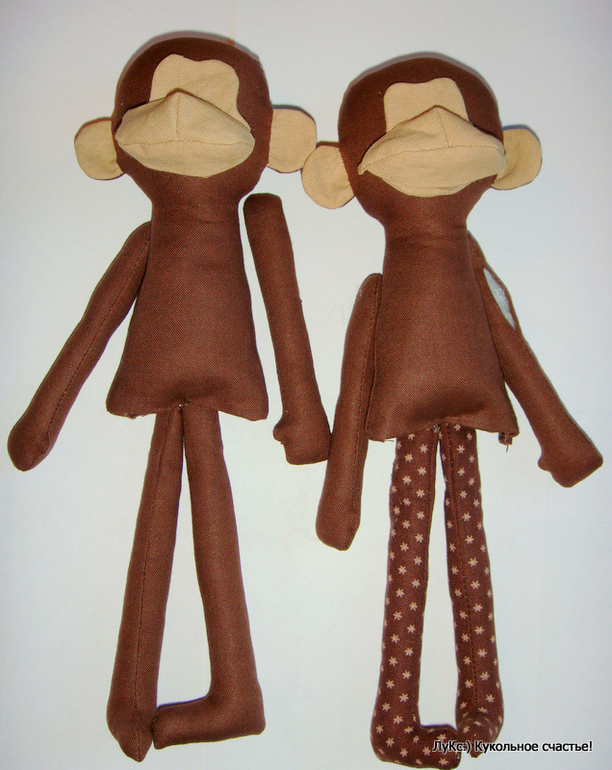 Вот тушки моих будущих обезьянок и готовы) ах, да! Ручки я пока не пришивала - мне так удобнее одевать будет))
