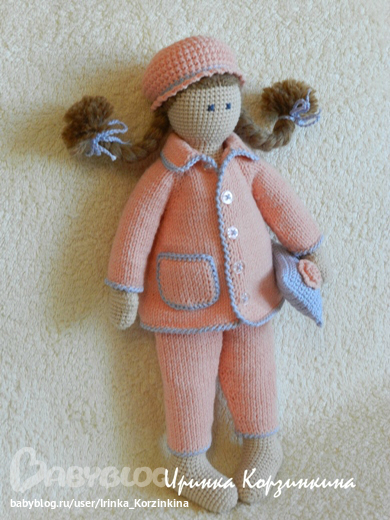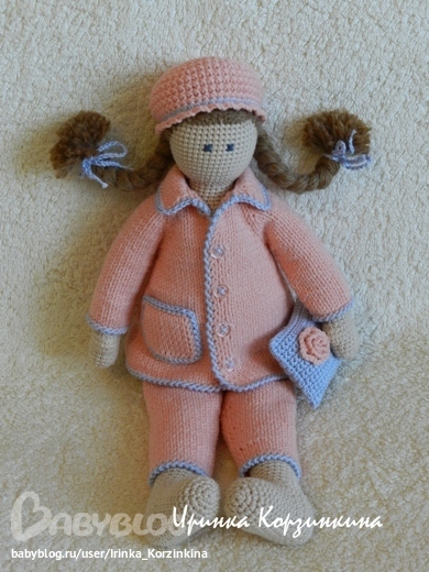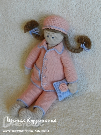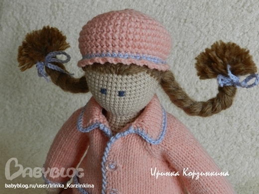 Кукла цельновязаная. Сидит, стоит с опорой. Выполнена из хлопка с акрилом. Наполнитель - синтепух.