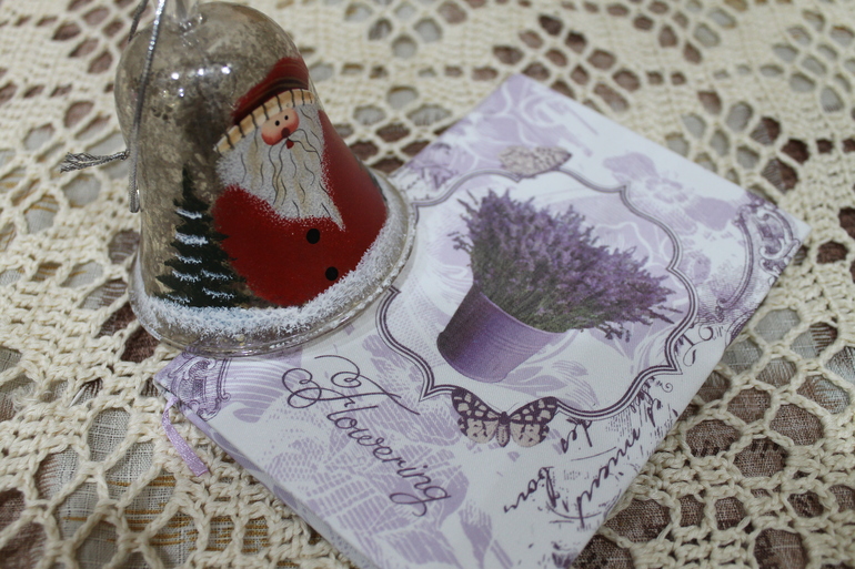 А ещё был лавандовый блокнотик и колокольчик на ёлочку!!!! Надеюсь, в этом году на Новый год у нас получится купить новую большую ёлку в нашу новую большую квартиру!!! И я смогу ,наконец-то, в полней мере реализовать свою задумку с коллекционированием ёлочных игрушек!!! И этот колокольчик будет радостно звенеть на нашей зимней красавице!!!