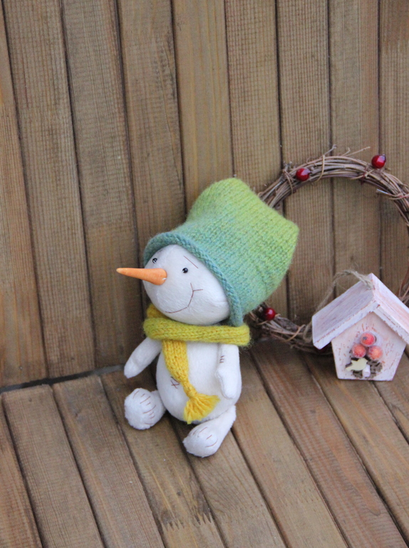Оговорюсь сразу: шить его можно из вискозы, из микрофибры, как у меня,из плюша для игрушек, который продается в Иголочке, флиса или даже льна (бязи). В любом случае Снеговик получится,пусть они и будут немного разные.
