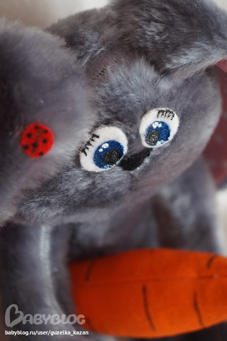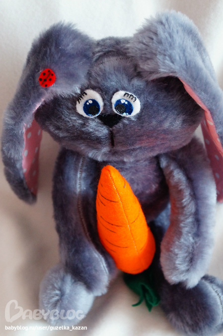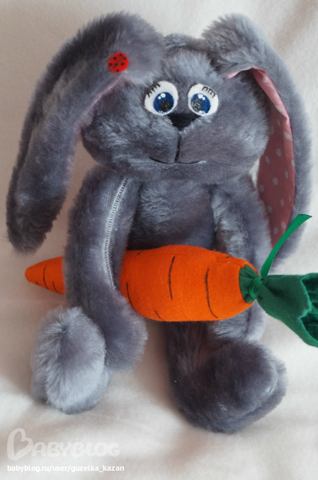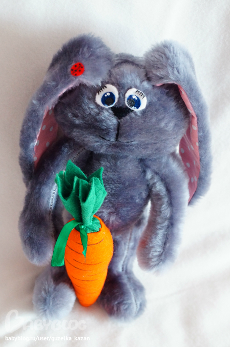 Мягкие игрушки-зверушкиСнова я с зайкой!!!Этот зайка сшился на заказ.Рост 30 см. Пожеланием было,чтобы немного походил на зайца Шнуфеля. Зайка получился очень мягким и тискательным)