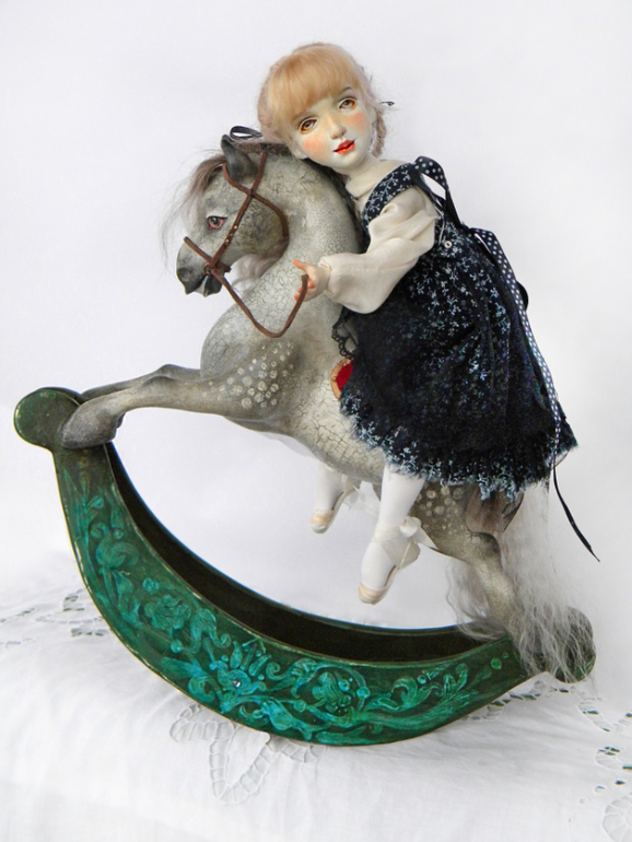 Куклы и игрушки из полимерной глины и других пластиков, а также из соленого тестаНовая куколка Веста. (2015 г.) Подвижная, имеет шарнирную голову и руки. Ноги подвижны, как у текстильной шарнирки. Рост 35 см. Лепные части тела сделаны из La Doll и Fimo Puppen. Собраны на профессиональную резинку для BJD кукол. Тело мягкое, набито холлофайбером. Вся одежда съемная, на подкладке. В одежде использованы: антикварное и винтажное кружево, натуральный шелк, сетка, пайетки Сваровски, бисер, японский хлопок, вискоза. Волосы- натуральный мохер. Длина в среднем 17 см, мягкие и шелковистые,(кашемировая коза). Роспись масляными и акриловыми красками. Вся работа выполнена вручную. Одежда и обувь съемные.