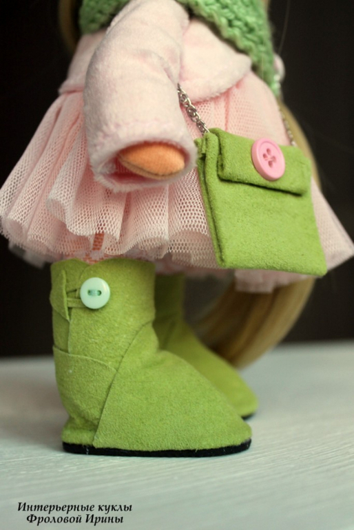 Обувь и сумочка из натуральной замши, шапочку и шарфик вязала моя мама. За что ей большое спасибо.![]()