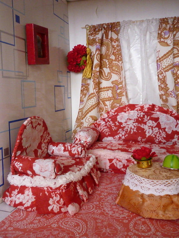 В общий зал повесили фото в рамке, шторы, посадили цветы. Мебель делала давно.