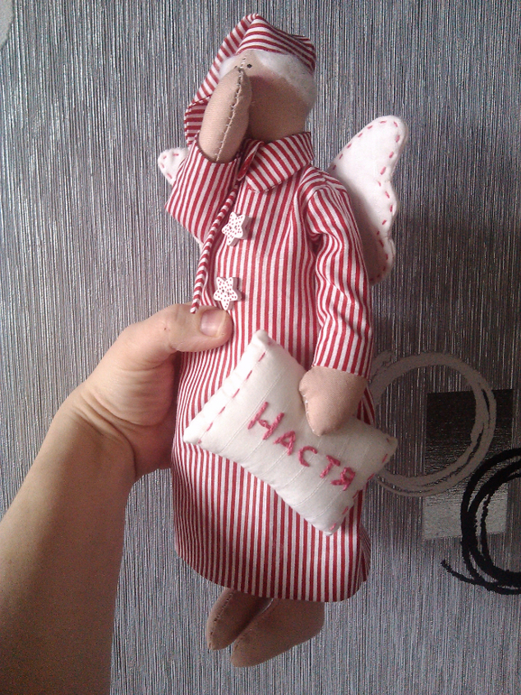 ТильдыВот такой немного несуразный получился у меня... Шила вручную... Когда натягивала ночнушку, которая оказалась слишком уж узковатой в горловине, от моих варварских манипуляций немного разошёлся шовчик на лице, обидно :( Но мне жалко было его переделывать, ведь это мой в своём роде первенец, причём очень долгожданный))) Итак, знакомимся - СЕМИРАМИД!!!