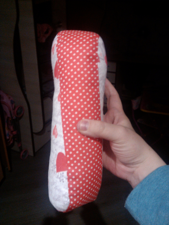 3. Я, когда вывернула букву "Я", сразу её решила набить, а уж потом как-нибудь пришить) Не знаю, почему мне такая мысль пришла в голову (переработалась я, наверное), но я так была уверена в правильности своих действий, что тут же зашила боковой шов и стала усердно наполнять подушечку холлофайбером... Потом обнаружилось, что не так-то просто зашивать это окошко, но... частичное изъятие наполнителя быстро решило данную проблему! Потом пришлось распарывать боковой шов и "наша-песня-хороша, начинай-сначала!")))