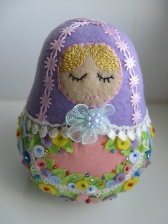 Натолкнулась однажды на фото в сети фетровой матрешки и так она мне понравилась... что сшила свою по мотивам увиденной. Вот что получилось: