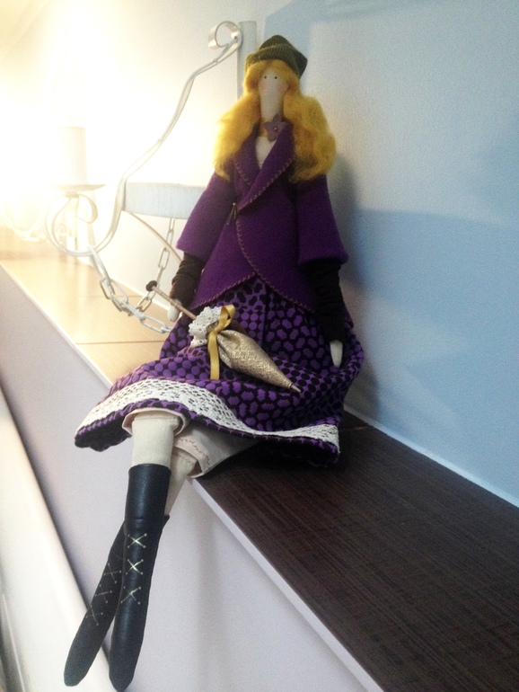 Продажа работ и предложения от рукодельницОсенняя тильда ищет свой дом. Пальто выполнено из кашемира, сапожки - из кожи. Волосы - шерсть для валяния. Ноги гнутся в коленях, руки - в локтях. Рост - 60 см.