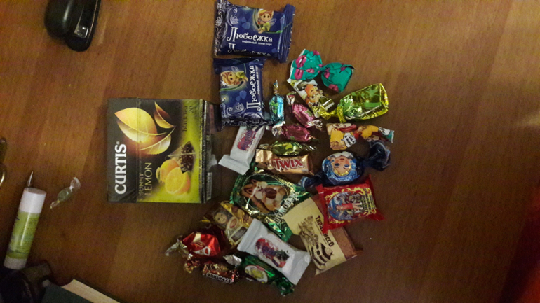 Все, содержимое посылрчки было пересыпано конфетами :)