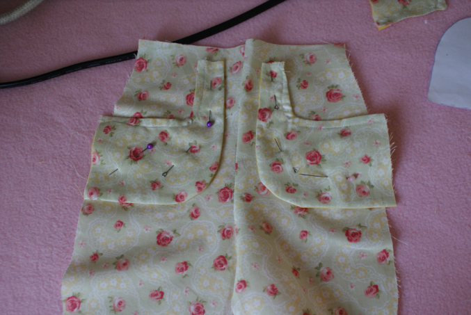Пришила карманы. Приложила пояс и нагрудник. Я так и не поняла до конца как енто все правильно пришить, сделала так