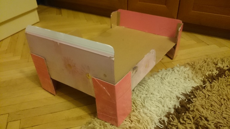Аксессуары для кукол своими рукамиЯ сделала кроватку для куклы из коробки, в которой куклу продавали. Как ее декорировать? Обклеить цветной бумагой? Покрасить? Еще у меня есть гипс, который я использую при создании топиариев, может тонким слоем гипса ее отделать, как штукатуркой, и потом покрасить? Кроватку я склеивала скотчем