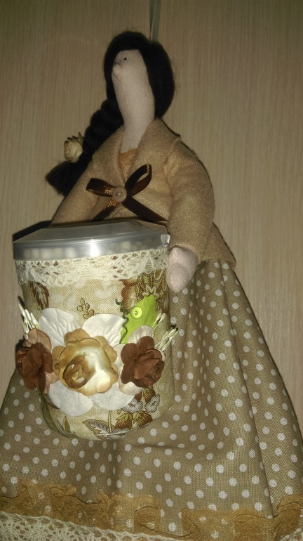 Сегодня покажу хранительницу палочек и дисков в бежевых тонах.