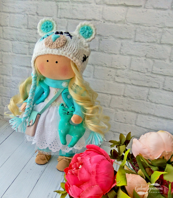 Текстильные куклы (кроме вальдорфских)Всем привет! Пришла познакомить вас с моей очередной куколкой, которая уже стала подружкой одной маленькой леди). Одежда в нежной цветовой гамме, блондиночка. Рост 29 см. Сама стоит и сидит.
