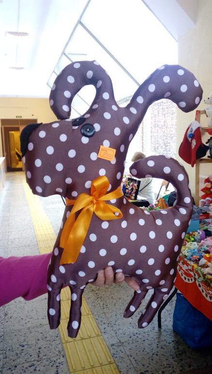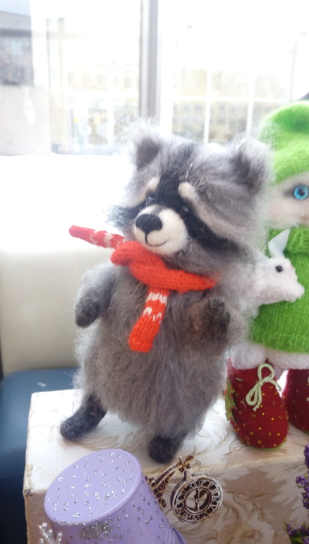 Почти на каждую ярмарку приходит мастер,которая шьет и вяжет очень душевные игрушки,например такие как этот енот))