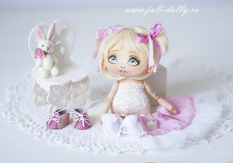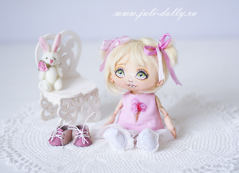 Продажа работ и предложения от рукодельницКукла текстильная, ростом 18 см. Кукла-болтушка! Нет, она не очень любит разговаривать, просто ее особенность в том, что ножки у нее болтаются )