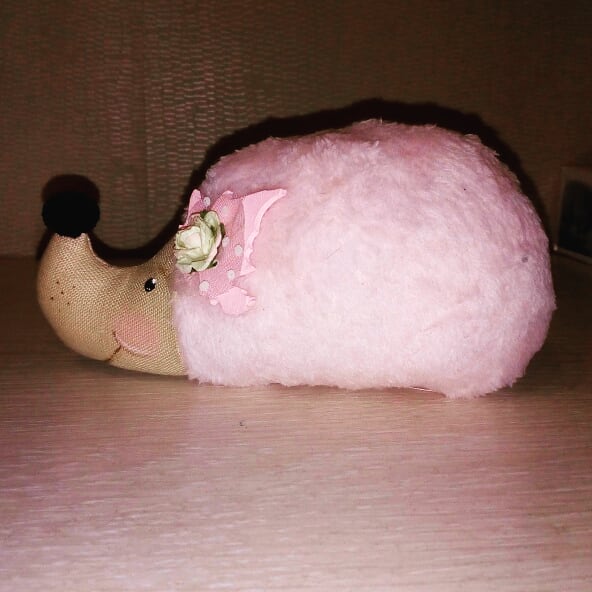 Маленький ежик. Из последнего кусочка розового меха. Что ,думаю,он лежит,надо кого-нибудь сшить ))