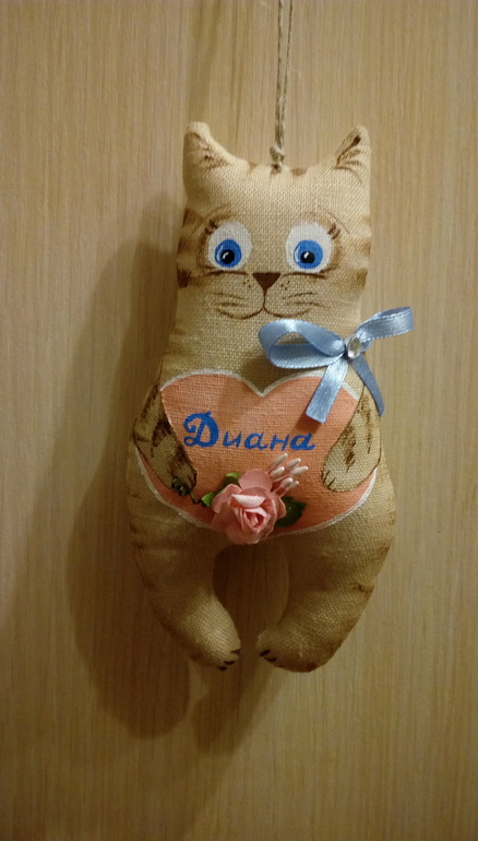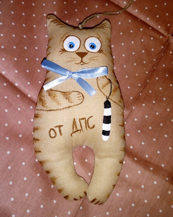 Котик из льна. Подобных котиков сшила много,Этот из любимых))) оберег в машину )))