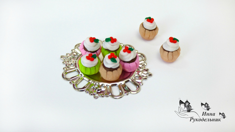 Кукольная миниатюраДля своих кукол решила сделать сладости. Лепила из полимерной глины капкейки.