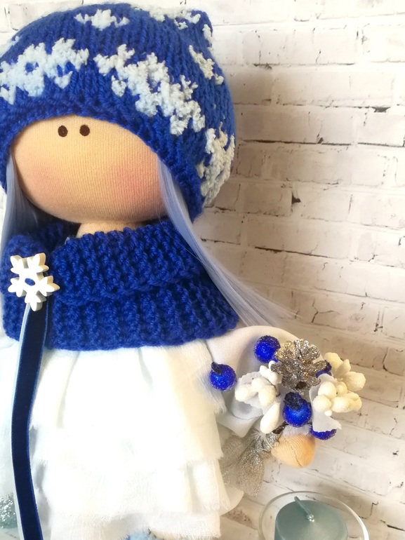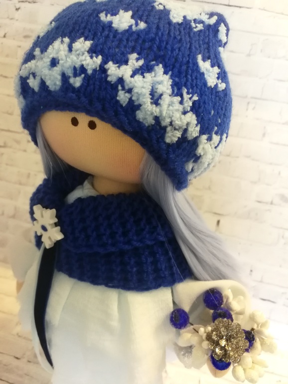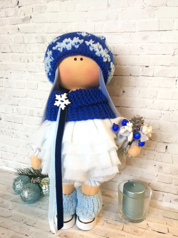 Нежная, снежная девочка получилась. Платье из тончайшего хлопка в 4 слоя воздушное, как облако. Небесно-голубого цвета :)