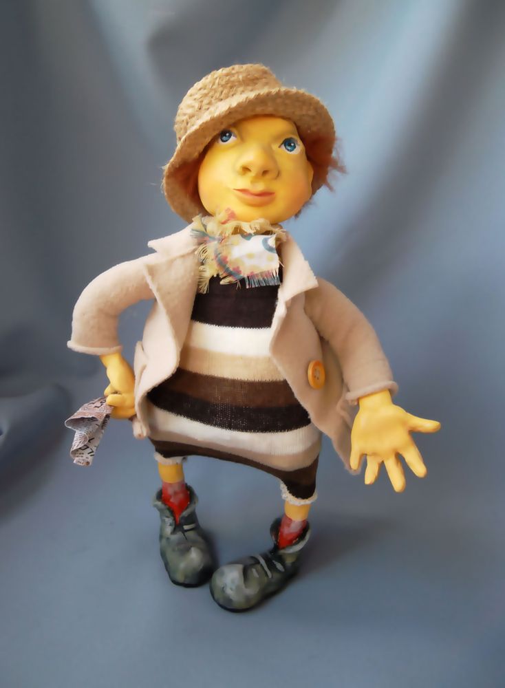 Моя первая кукла , Васенька. Слепился на одном дыхании. Никаких эскизов и предварительных задумок не было. Слепила личико и стал понятен весь образ.