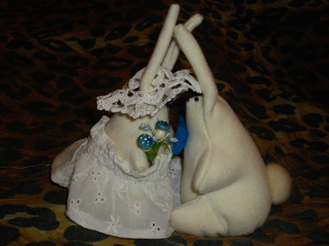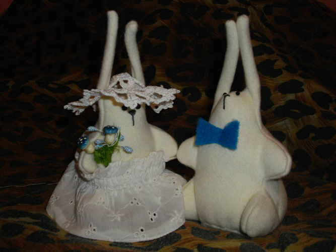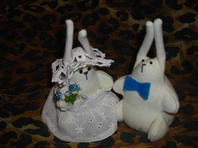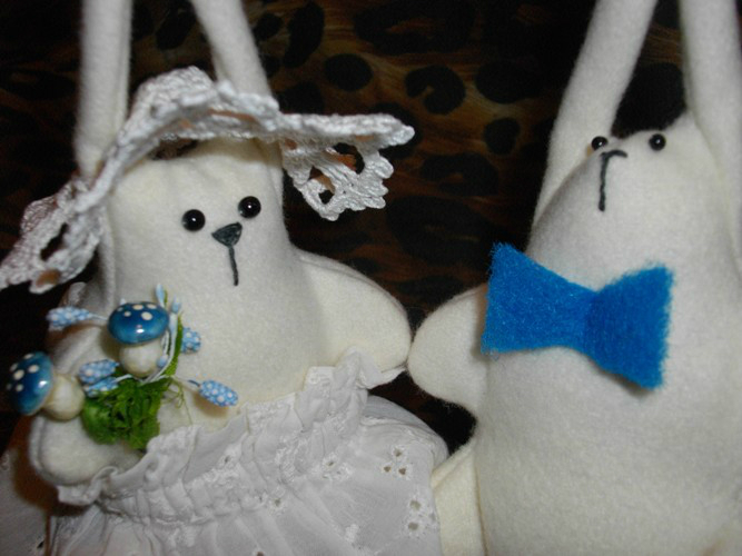 Мягкие игрушки-зверушкиКогда-то у моей знакомой была свадьба в потрясающем бело-синем стиле. Это было нечто! Мне так оно запомнилось))) Вот решила воплотить в зайках! Это наш СП меня сподвиг))) И это еще не все!