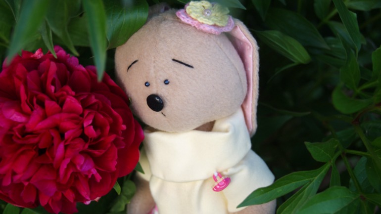 Мягкие игрушки-зверушкиПривет, рукодельнички! Покажу вам сегодня милую заю, которую сшила для своей доченьки. Она её очень любит, таскает везде с собой))) Сшита из флиса, ростиком 20 см, носик-пуговка,кофта- трикотаж, юбка-лён с вишенками) на голове заколочка с вязаными цветами, на кофта брошка- мороженка :)