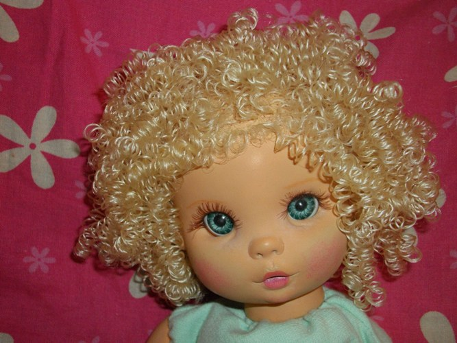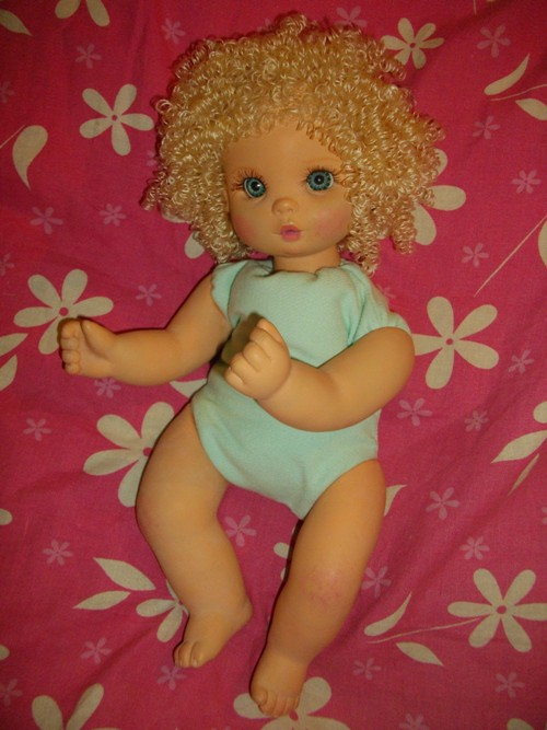 Реставрируем куколДевочки, привет всем! Вот такую малышку мне прислали на реставрацию. Полная реставрация Глории включила в себя замену и перепрошивку волос, замену глазок, ресничек, полная перекраска тела и головки акрилом для реборнинга LDC, пропитка гелем "эффект бархатной кожи", закрепление матт-варнишем, новая прорисовка губок, бровок, румянца, коленочек, локотков и пяточек))) Тельце было заменено на мягкое, но заказчица захотела старое тельце, поэтому заменим его на старое, тоже проработанное акрилом))) Костюмчик выбирали с дочей, перебрали кучу вариантов, остановились на розовом комбинезоне, но я думаю, что новая хозяюшка по имени Даша без труда обновит ее гардероб! Волосики Глории - синтетические кудри - прошиты по одному и закреплены изнутри, поэтому их можно мыть, менять прически и закалывать заколочки, которые Глории очень идут! Кто хочет посмотреть на результат полной реставрации Глории - добро пожаловать под кат! Ну а сама Глория очень скоро поедет в город Зеленокумск радовать свою маму!