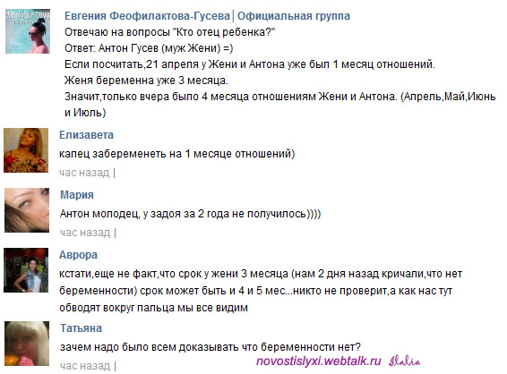 с пеной у рта доказывала что не беременна.и что свадьба по любви,со всеми ругалась о их высказиваниях про Б, а тепеь обосралась что свадьба из за беременности,почему не сказать сразу,это ведь хорошо что будет малыш и что полноценная семья,со всеми ругалась и вот результат,живот ведь не спрячешь,теперь будут слухи что сказала спецом для того чтобы выиграть ЧГ