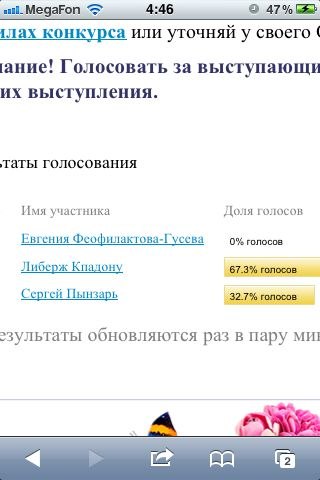 Я за Либерж!!!!! Уж точно не хочу, чтобы Женя выиграла! Уже надоели ставить ей в заслугу, что она беременна! И что дальше теперь? Каждый раз на стройке приводят этот факт и желают ей победы.