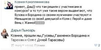В конкурсе терем для двоих учавствуют пары-семья Пынзарь, семья Гажиенко, семья Гусевых.И еще две пары потом присоединиться (и это не участники дома 2, Бузуова и Тарасов, Бородина и Терехин )эфир16 сентября!!!!