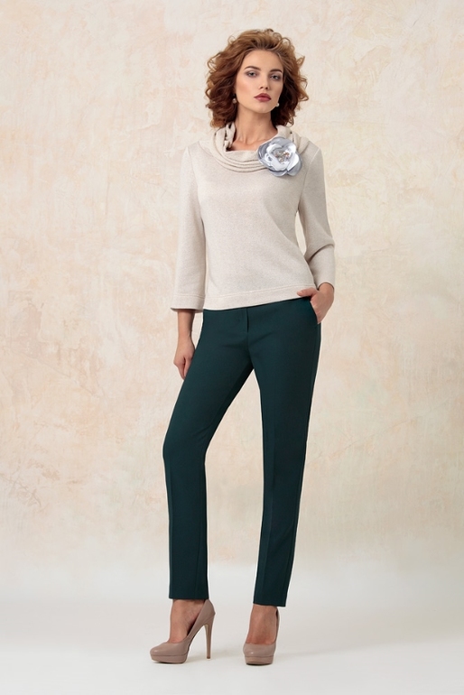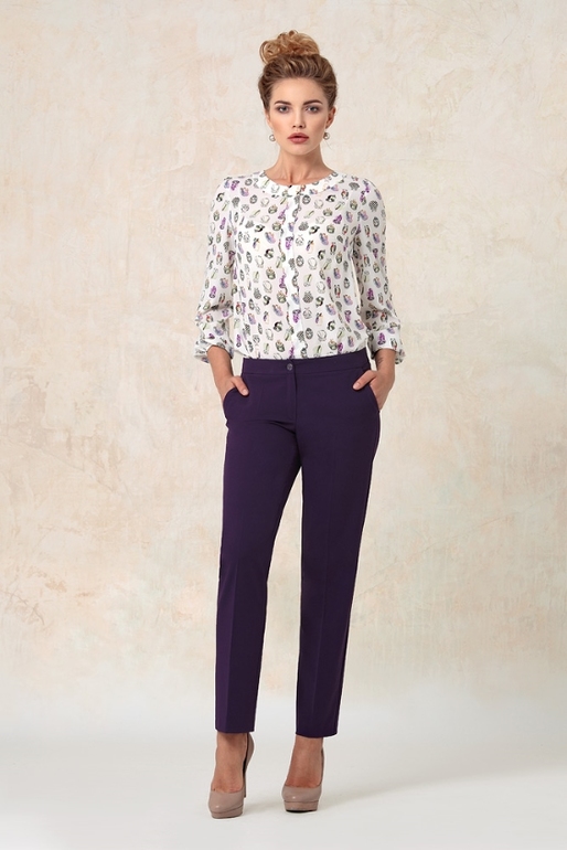 Классическая, строгая блузка полная цветовой экспрессии. Ванильный фон придаёт свежесть и изысканность. Дорогой бархатистый шифон идельно ложится на любую фигуру.Женские классические брюки. Выполнены из мягкой поливискозной ткани. Брюки с боковыми карманами и на притачном поясе со шлёвками.![]()